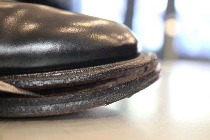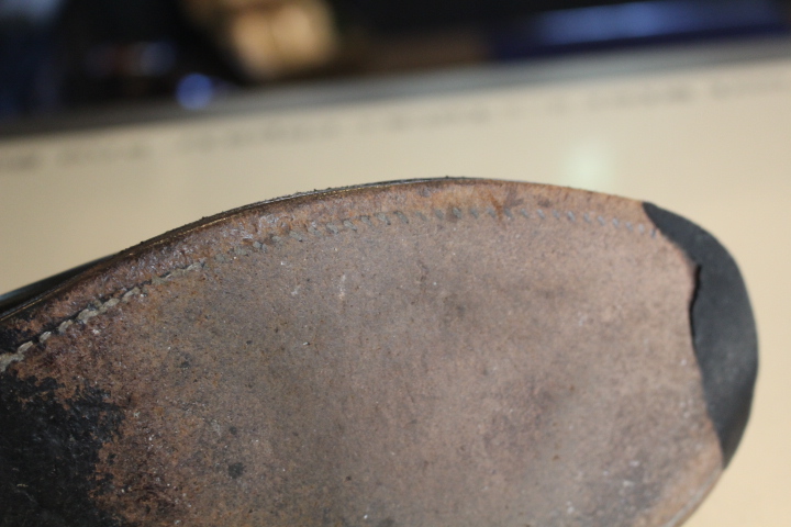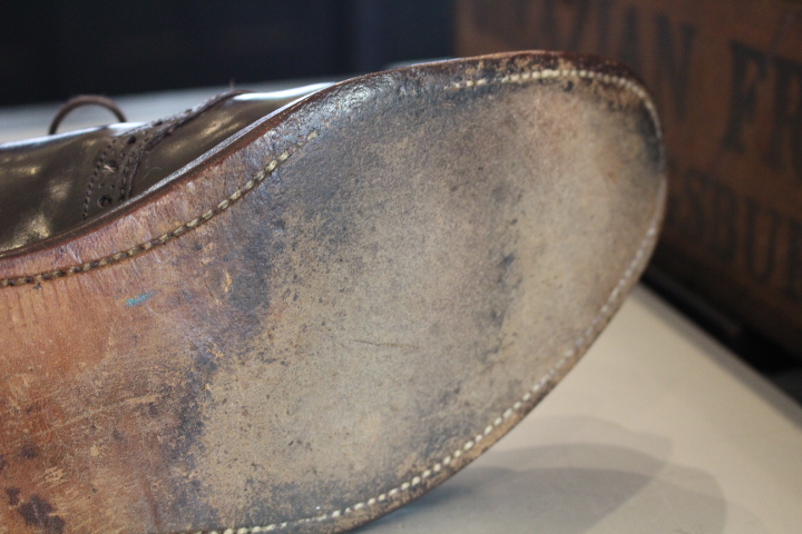昔購した靴でレザーソールのまま履れていた場合、5年・10年と月日が経てばソールの接着が緩み、剥がれやすくなっている場合もございます。