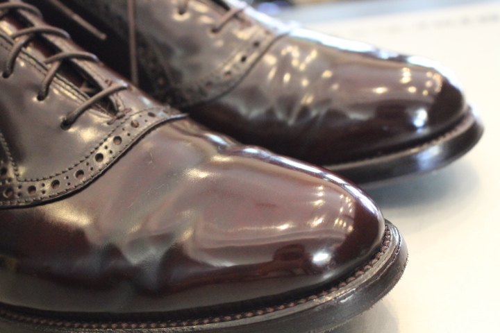 アッパーはお手入されておりコードバンの特有の艶で出ております。
