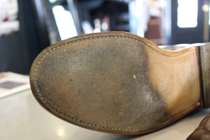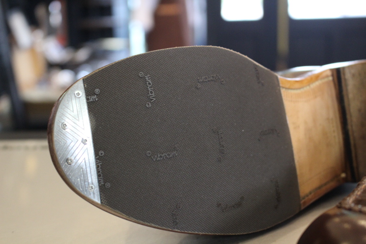 レザーソールのまま履かれていましたが、ソールの保護&滑り止め効果の高いハーフラバーソールを取付けます。