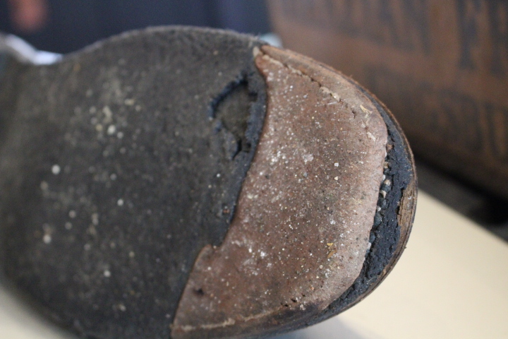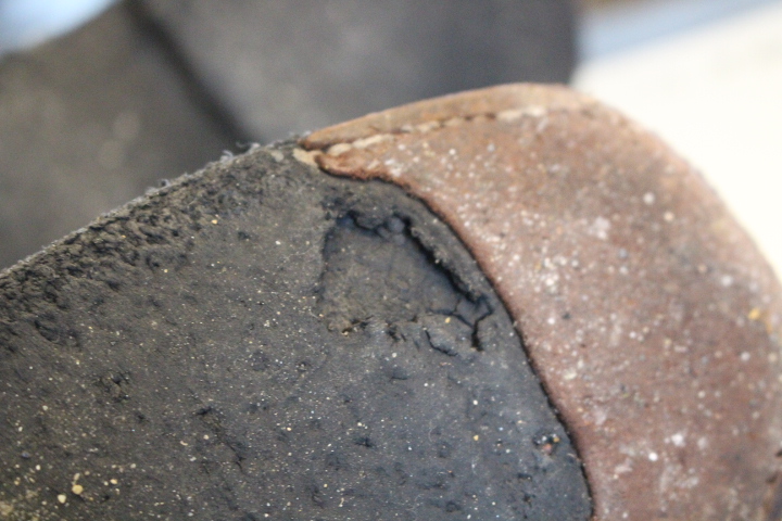 ソールはプランテンションソールで天然生ゴム特有の劣化が始まっておりました。
