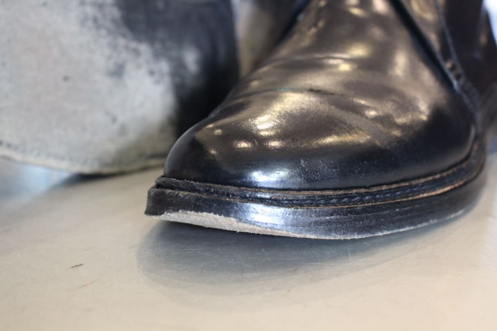 一見良さそうに見えるアッパーも、実はWAXやクリームが厚塗りされて毛羽立っておりました。