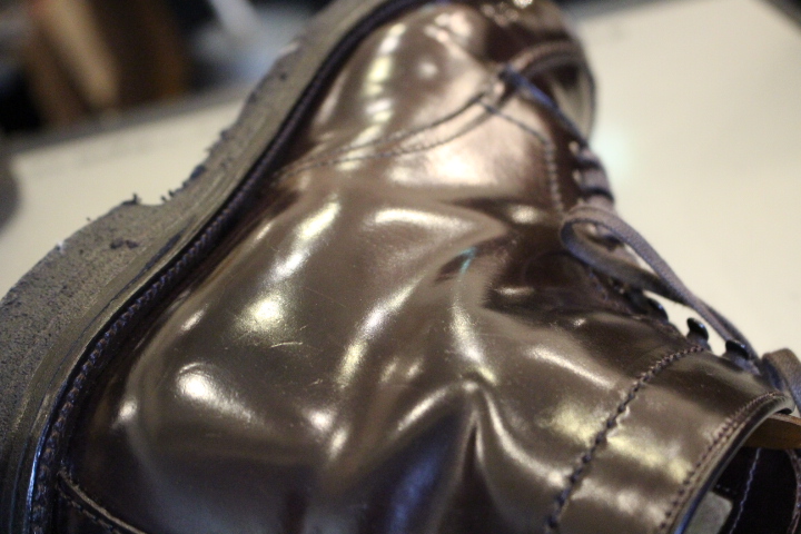 コードバン特有のつま先周りの擦り傷は磨き方1つで目立たなくする事が可能です!