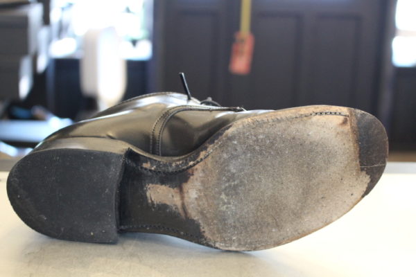 ソールとカカトの状態から、今回はオールソール(靴底交換)する事に。