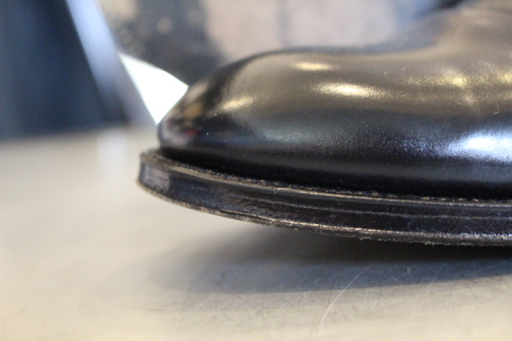 シングルソールでそのまま履けば、あっという間につま先がすり減ってしまう為、要注意!