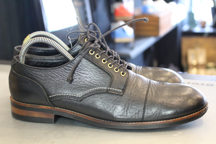 アッパーも乾燥しており、靴磨きを行えばこんなにも印象が変わります。