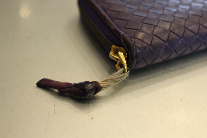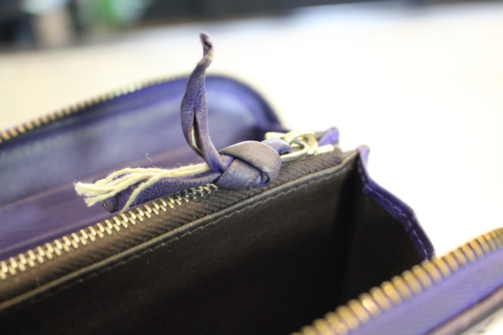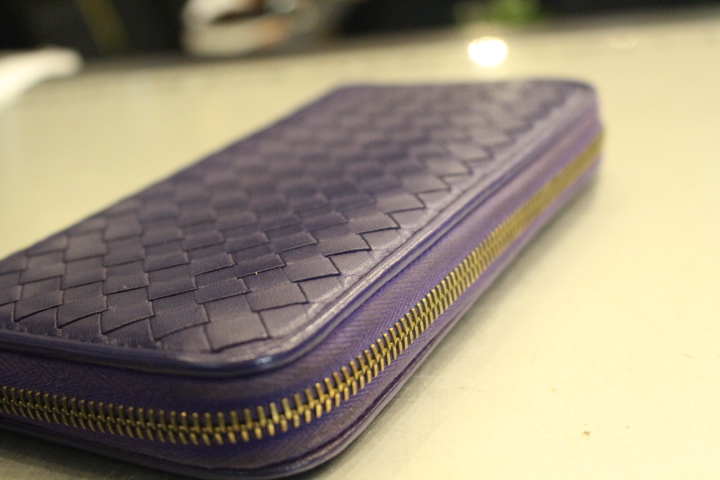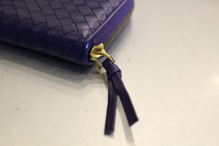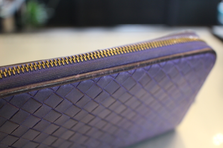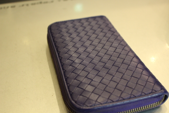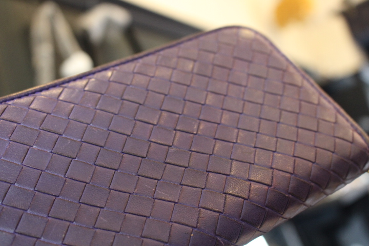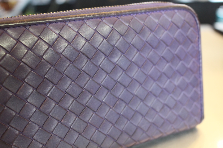 さて、今日は編み込みのレザーが印象的なボッテガヴェネタのお財布の染め直し。