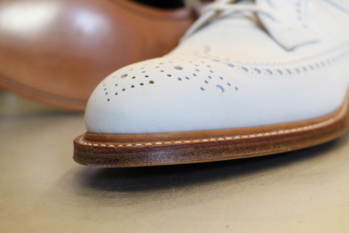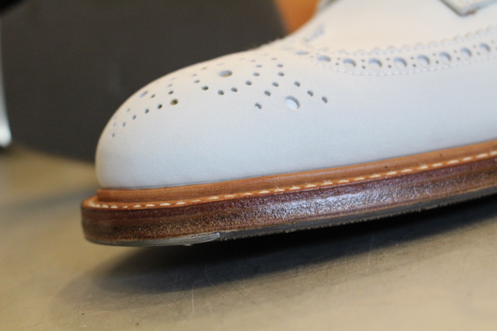 履き初めに滑りやすいつま先を保護する人気修理です。