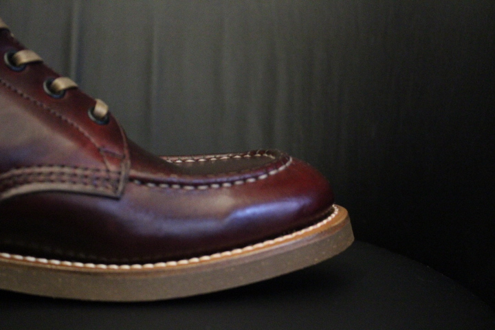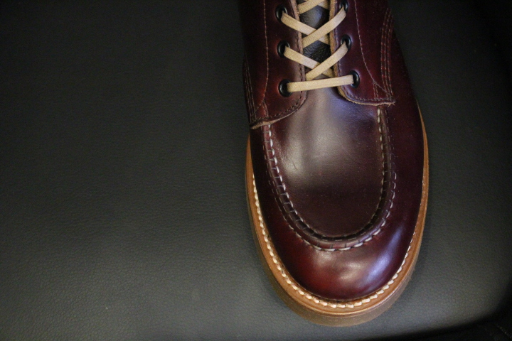 アッパーにはホーウィン社のクロムエクセルを使用。オイルレザーはエイジングが進むと足馴染みが良くなり艶が増していきます。