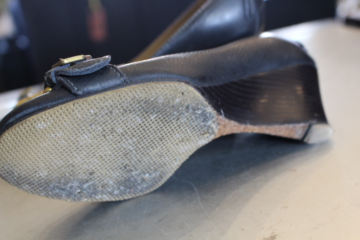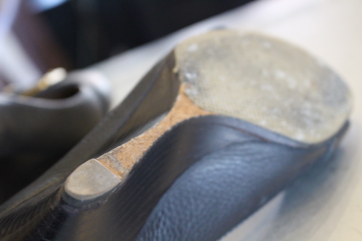 今回はハーフラバーソールを延長しカカトも交換致します。
