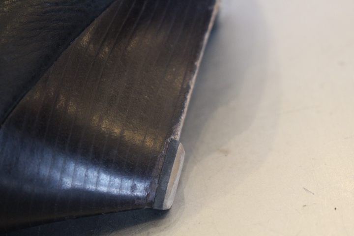 取り付けた部分は良いのですが、カカトまでの間までのレザー部分にダメージが・・・