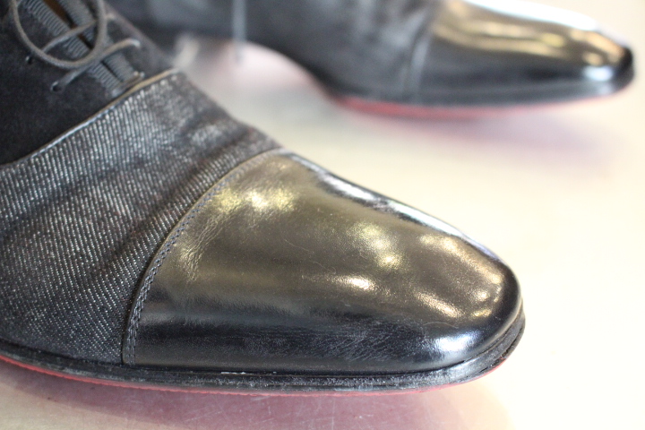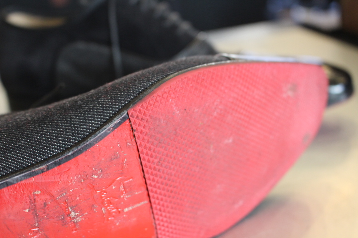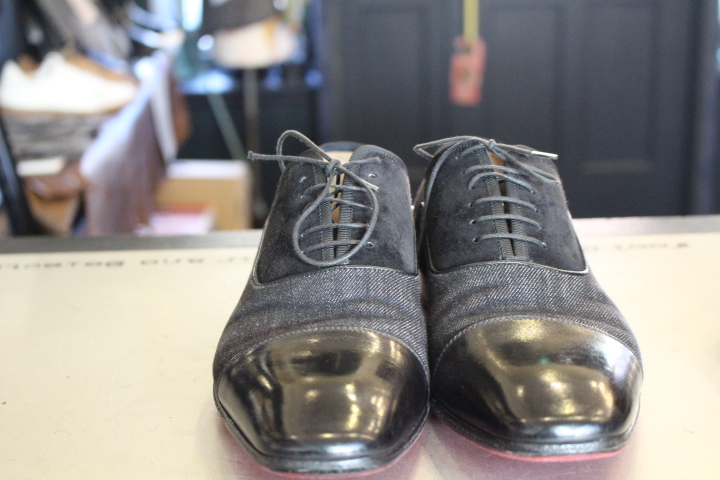 ルブタンの靴と言えばスタッズた付いたパンプスが印象的ですが、メンズシューズもありソールは同様に”レッドソール”で仕上げられておりました。