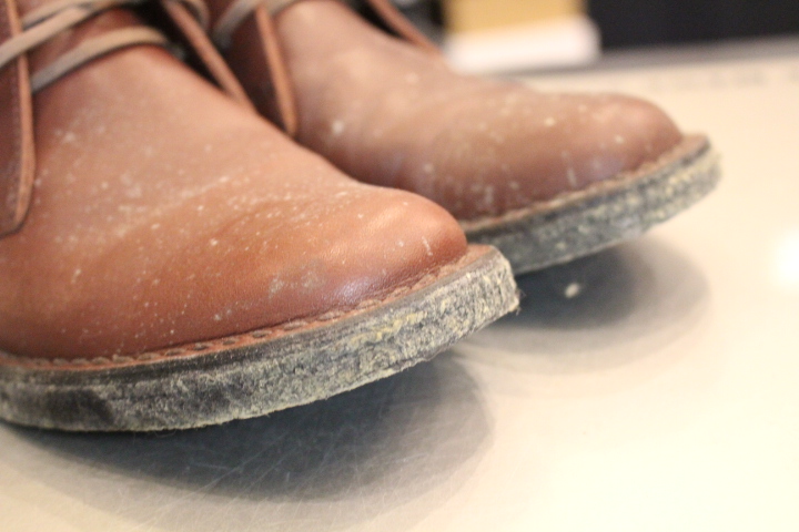 クラーク等の生ゴムの劣化によるストレスはオールソール(靴底交換)でノンストレスで履いて頂きます。
