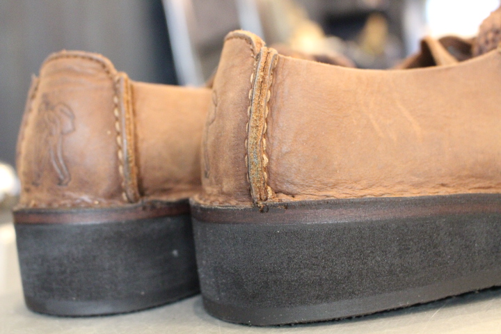 中底となるミッドソールはレザーを使用し、スポンジでソールの高さを調整。