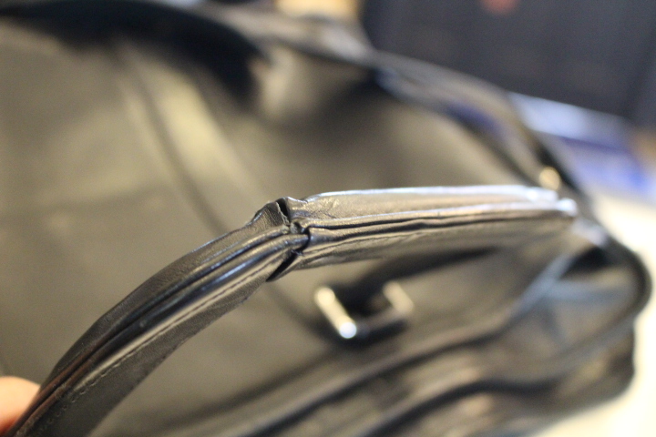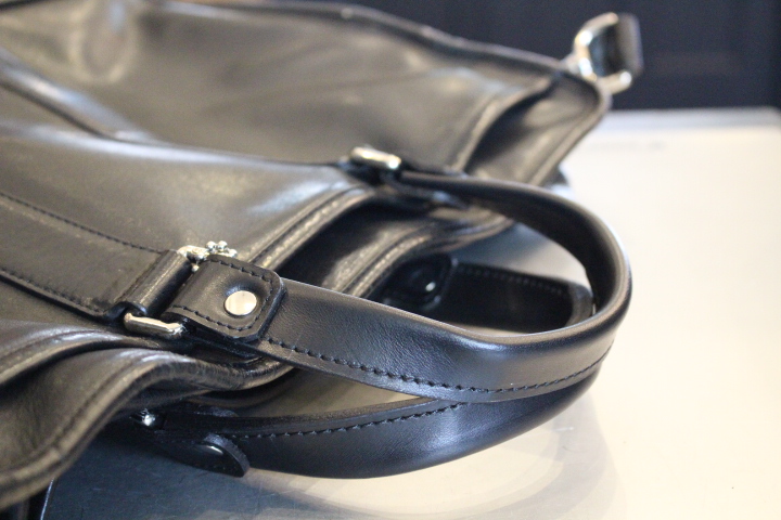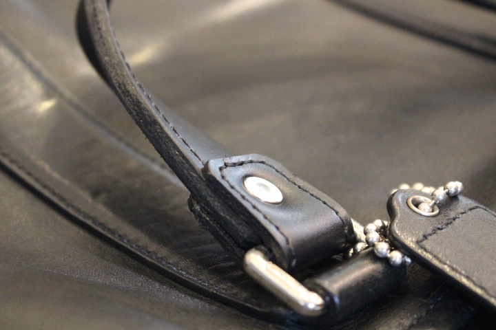 お客様のお仕事用のコーチのバッグですが、ハンドルの構造上使用年数によって切れかけておりました。