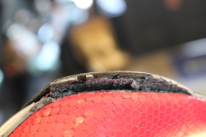 購入時に取り付けられたと思われるハーフラバーソールは、しっかりとソールを保護しておりますが・・・