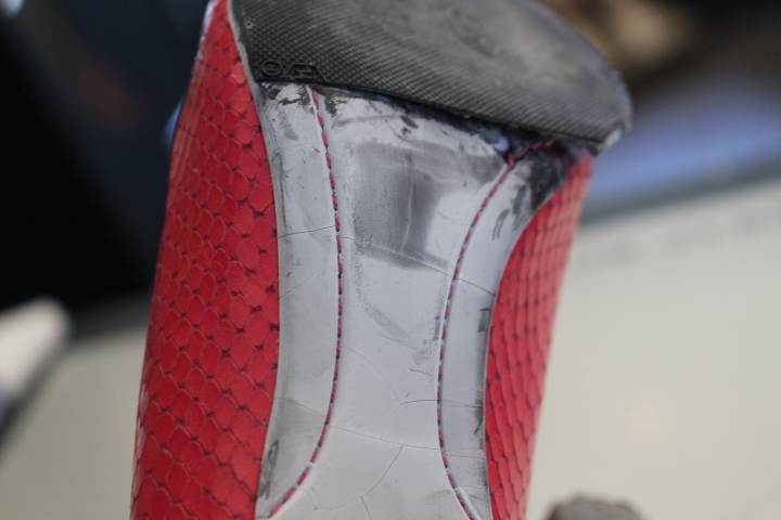 恐らく黒色だったと思われる靴底も白くなり、触ればポロポロと崩れてしまいます。