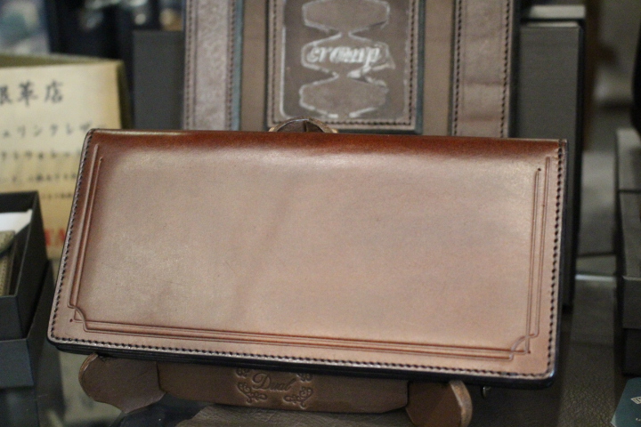 表面に装飾を排しネン引きでアクセントを加えたシンプルなロングウォレット。