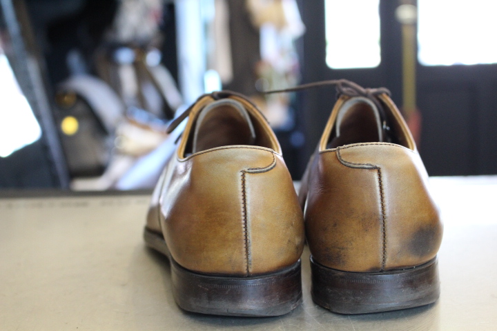 オールソール(靴底交換)前のアッパーの状態ですが、とても乾燥していました。