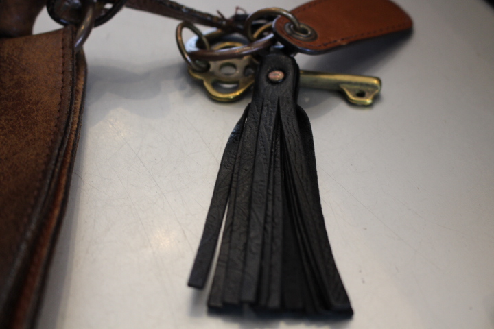 ブラウン・キャメル系であろう革の色が完全に抜けている状態。