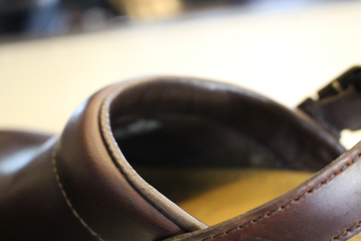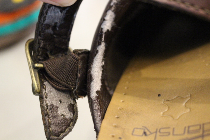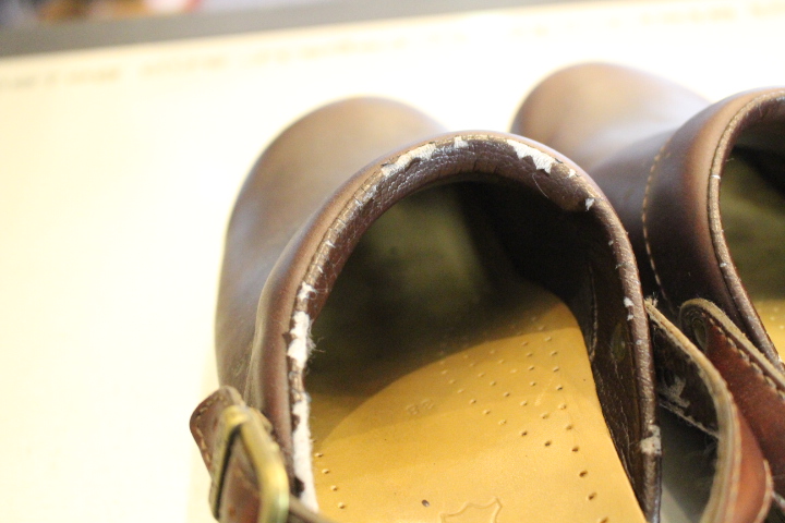 履きやすくお客様のお気に入りの1足でしたが、合皮の部分が劣化して御来店。