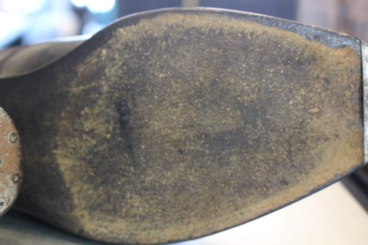 つま先はビンテージスティールで補強している為、レザーソールに穴が開いていてもしっかりと守られております。