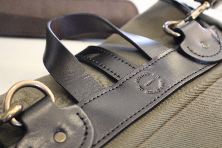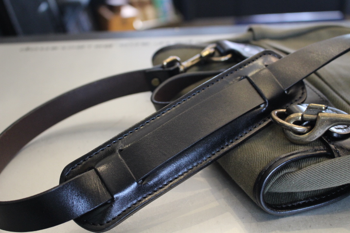 フィルソンのスモールラギッドツィルフィールドバッグですが、革の部分を染め替えてカスタム致します。