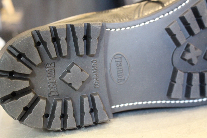お客様と打ち合わせを行い、グリップ力の高い同じコマンドソールでオールソール致しました。