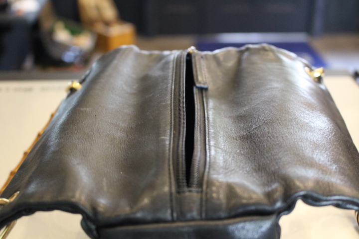 ファスナーと両サイドの革をカットし、使いやすくしております。