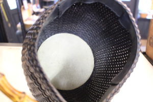 このままの状態で使えない事もありませんが、今回はお客様持ち込みの生地を使って張り替えます。
