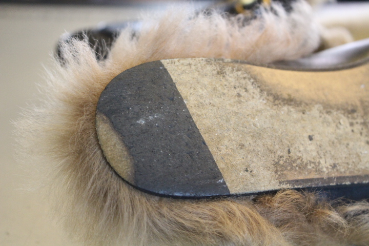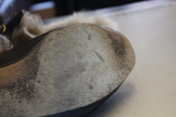 薄めのレザーソールですが、このまま履き続けるとソールがどんどん減って行く為今回は全面にソールと貼り付けます。