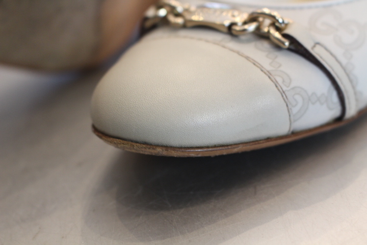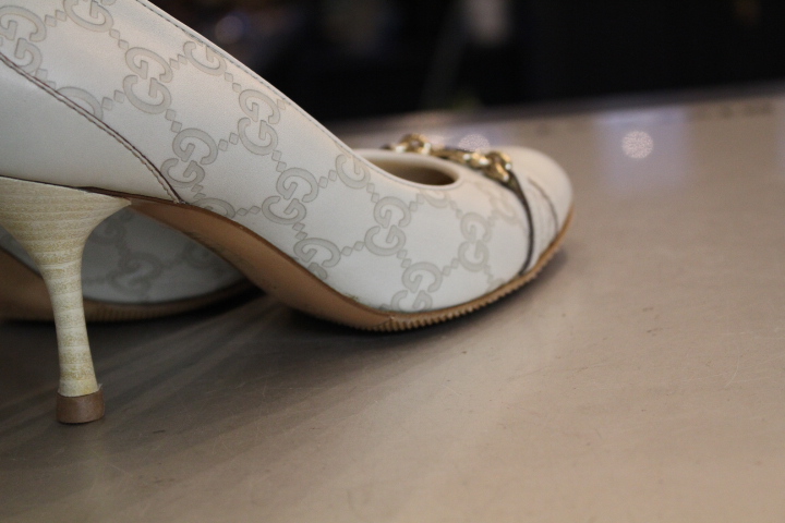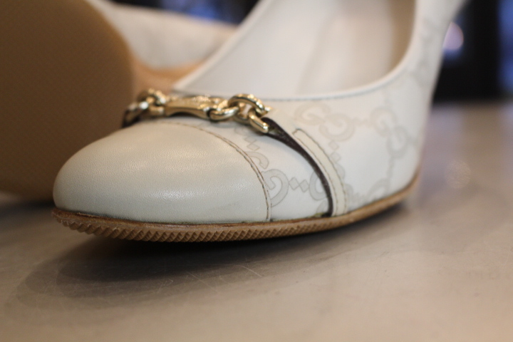 ハイブランドのグッチのパンプスもレザーソールが非常に薄い為、履き初めのハーフラバーソールの取付がオススメ!