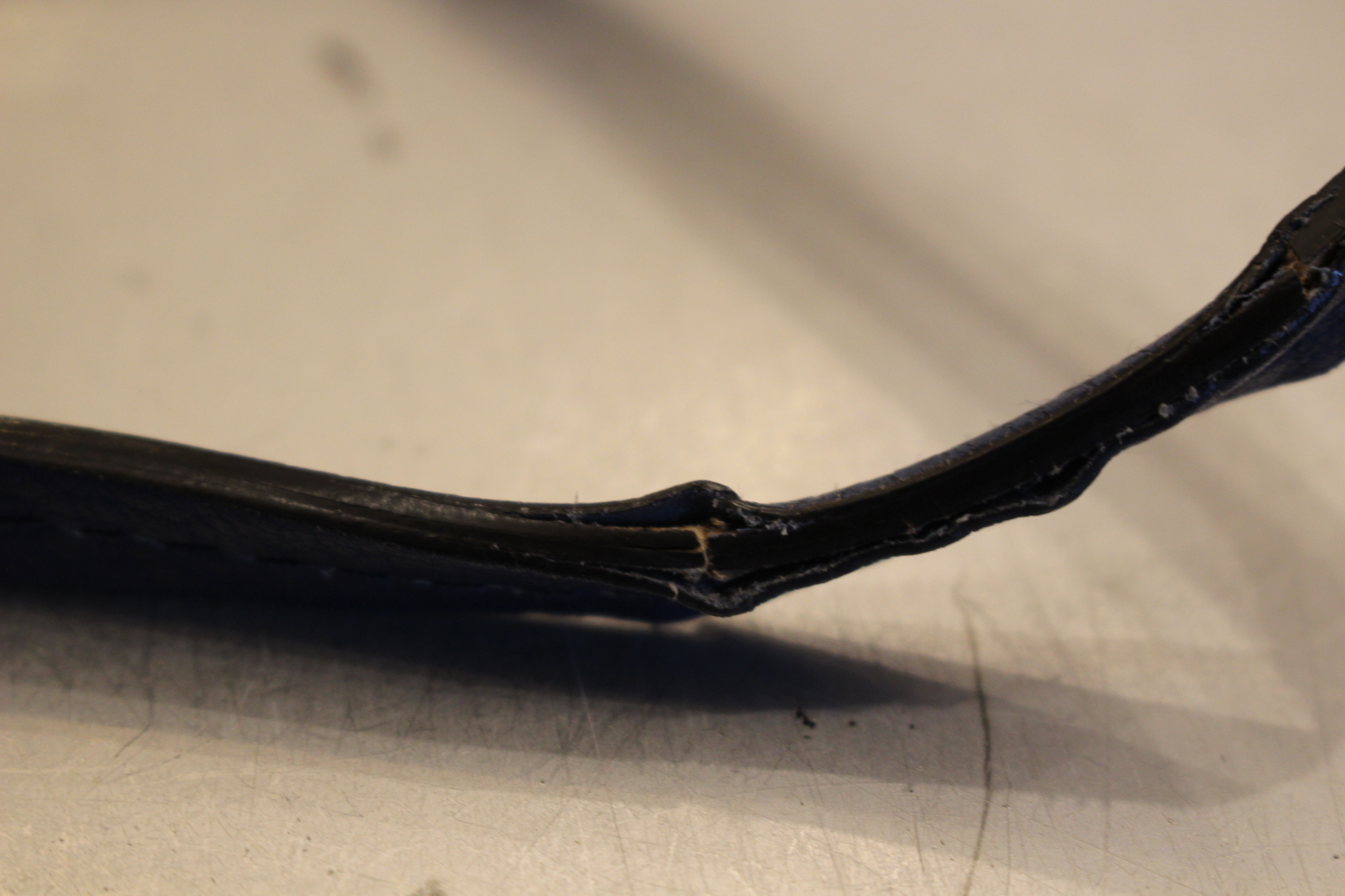 芯が折れ、コバも剥がれフニャフニャな状態です。