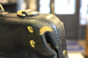 お客様の長年使い続けたヘルツのバッグも、使用年数と共に少しづつダメージが・・・