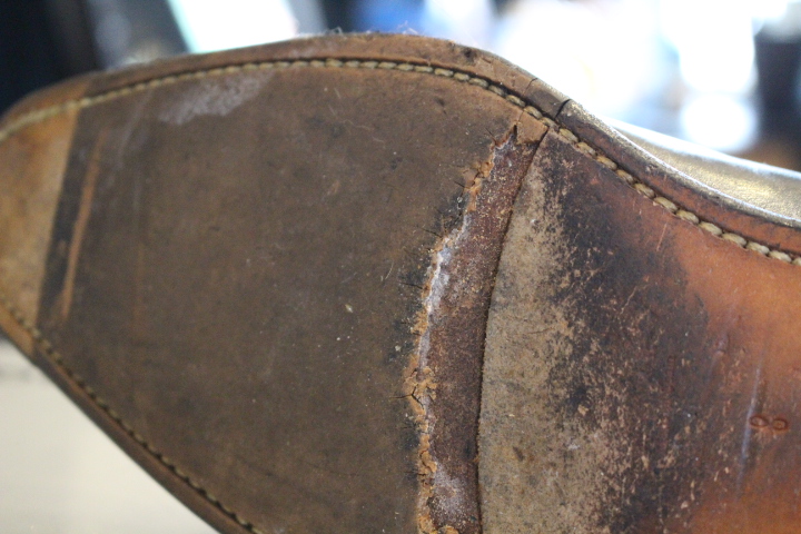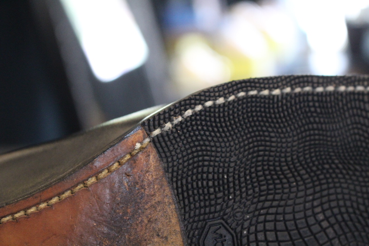 レザーソールやラバーソールに、レザーとラバーを組み合わせたソールとメーカーによって異なりますが、今回の様なラバー部分の劣化でお悩みの方にオススメなハーフラバーソールの交換です。