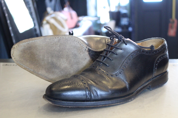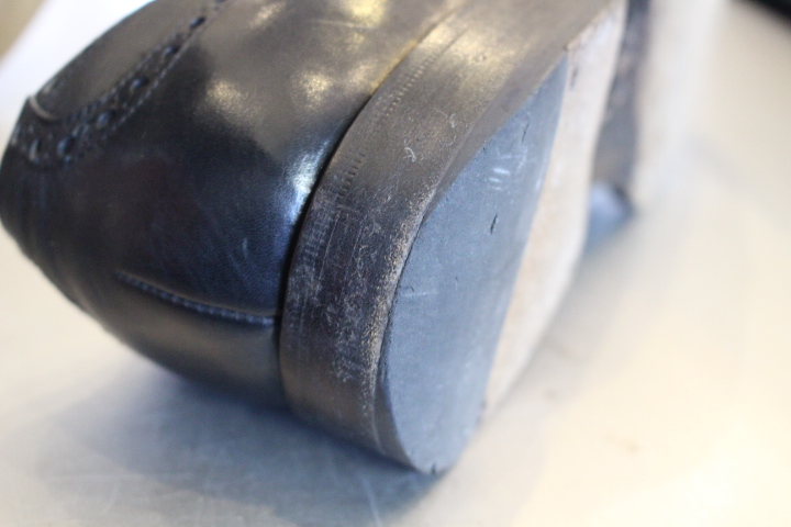 ソールに穴が開いていなければ、ハーフラバーソールで保護できたのですが、今回の状態であればオールソール(靴底交換)になります。