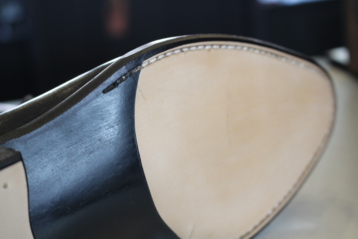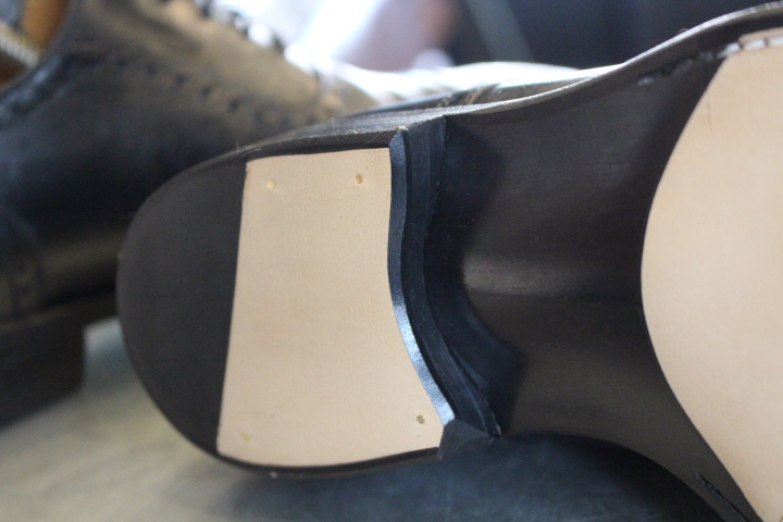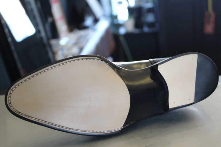 今回はお客様ご希望の”レザーソール”でオールソール(靴底交換)を行いました。