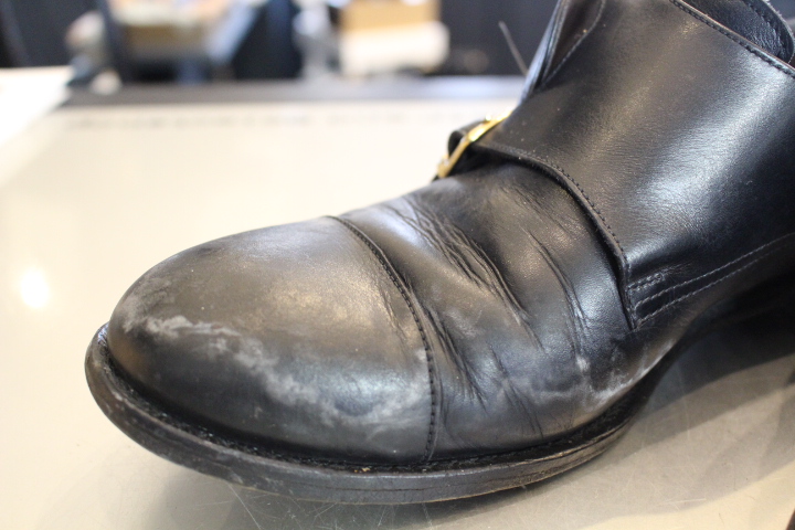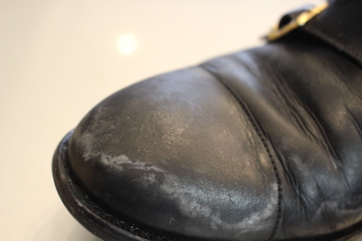 雨の日に履いてビショ濡れのまま乾燥させれば、つま先付近は凹凸だらけの銀浮き状態・・・