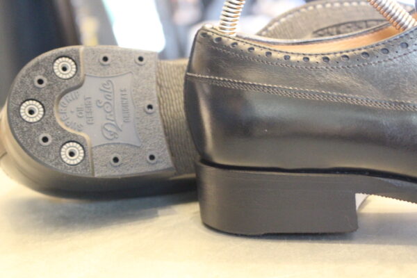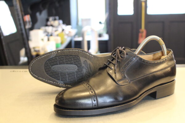 トップリフトも交換時期に差し掛かり、今回はソールの素材を変えてオールソール(靴底交換)致します。