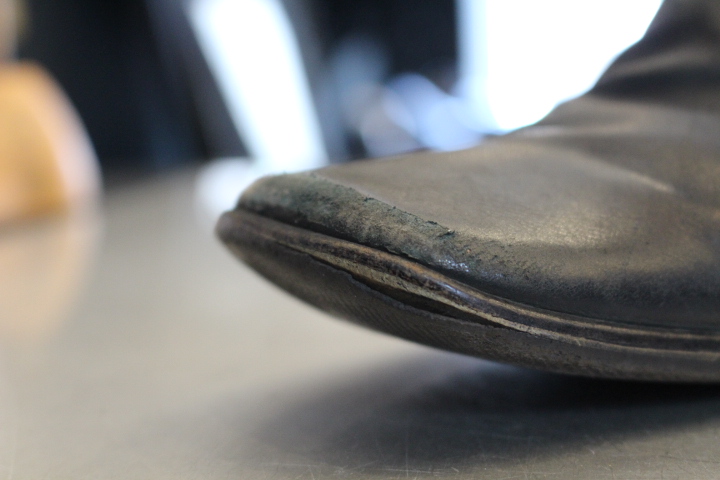 減りやすい爪先は擦り切れており、このまま履くとソールにダメージが・・・