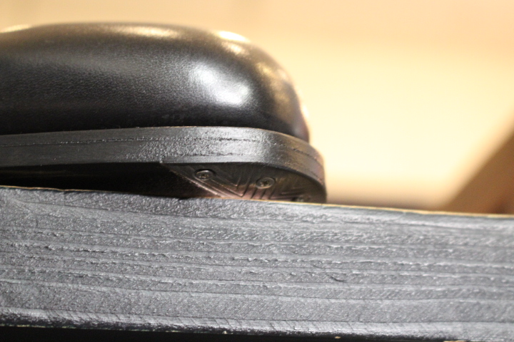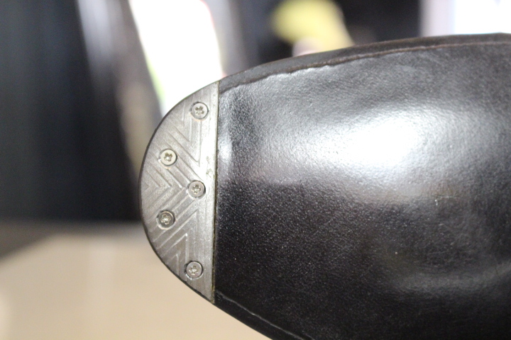 特に新品の履き初めが1番減りやすいつま先も、ヴィンテージスティールを取付ければこの通り!