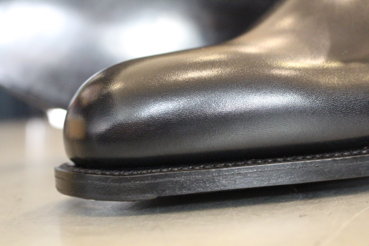 しかし、縫い目の無い1枚革でセンターに入った鼻筋(クリース)は堪りませんね!