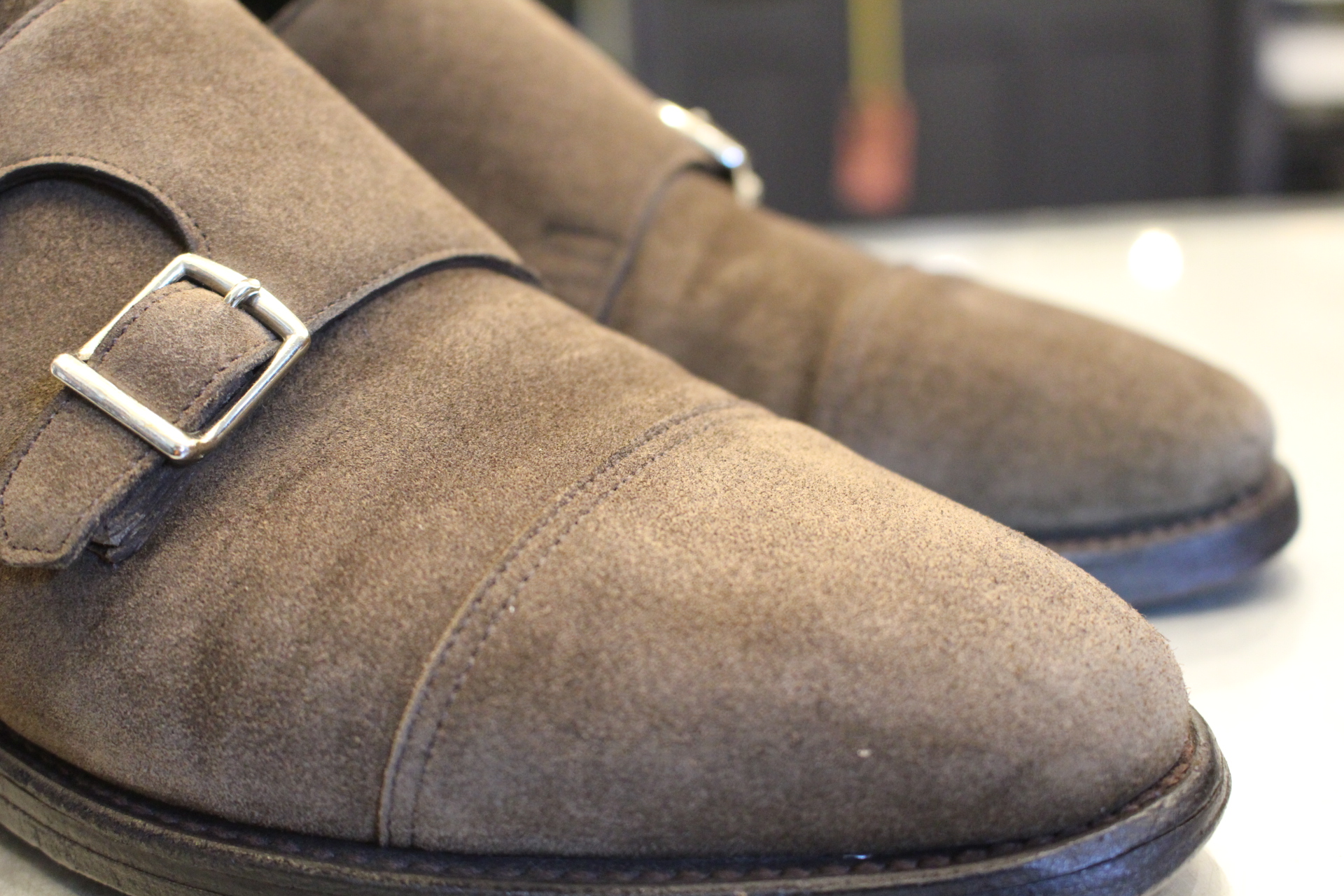 鏡面仕上げの様に大きく変わりませんが、起毛素材の靴も定期的な磨きがオススメです。