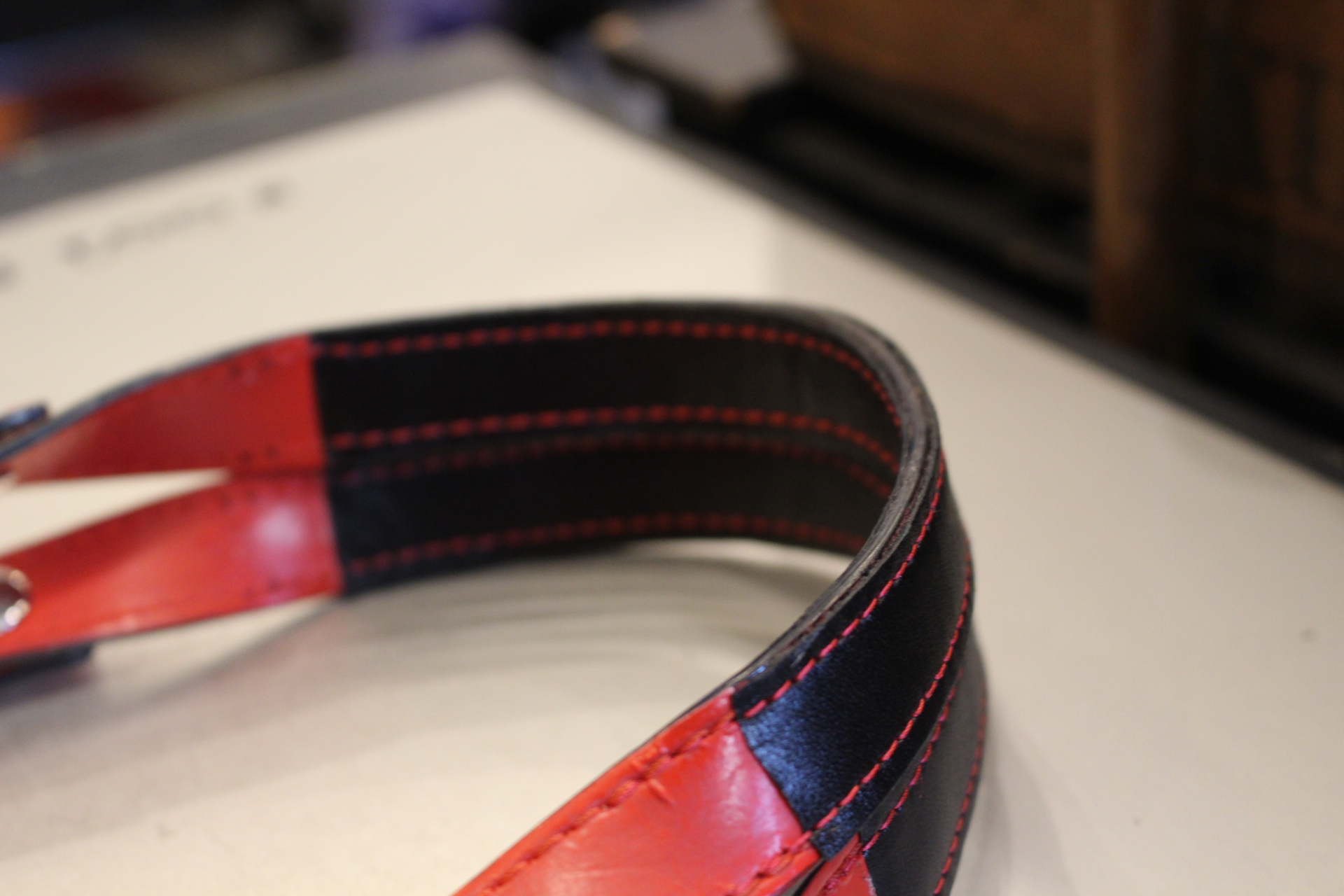 手で触れる部分は汗で黒ずんでしまうので、あえて黒い革で革巻を行ってます。