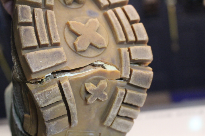 ソールの劣化と硬化でポロポロと剥がれていました。