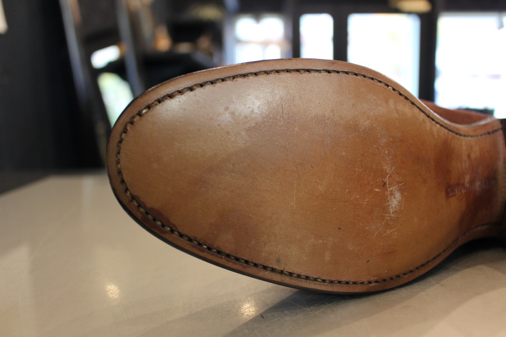 また、突然の雨や雨の日に履いた際にレザーソールに水分が染みにくくなる事で、アッパーの潮吹きや銀浮き・靴の中でカビの発生を最小限に抑えるメリットも。