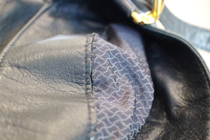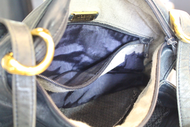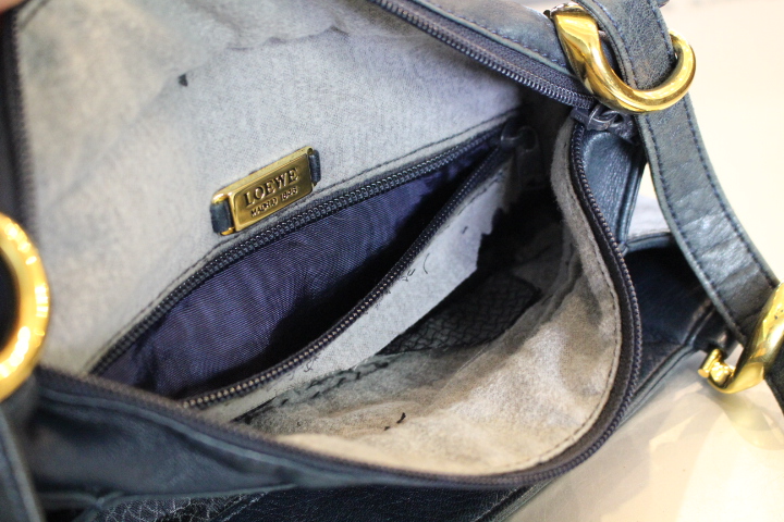 長年の使用により、革の色抜けや内張が劣化始まったロエベのショルダーバッグ。