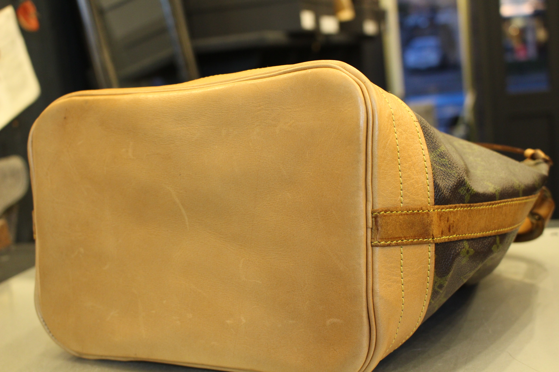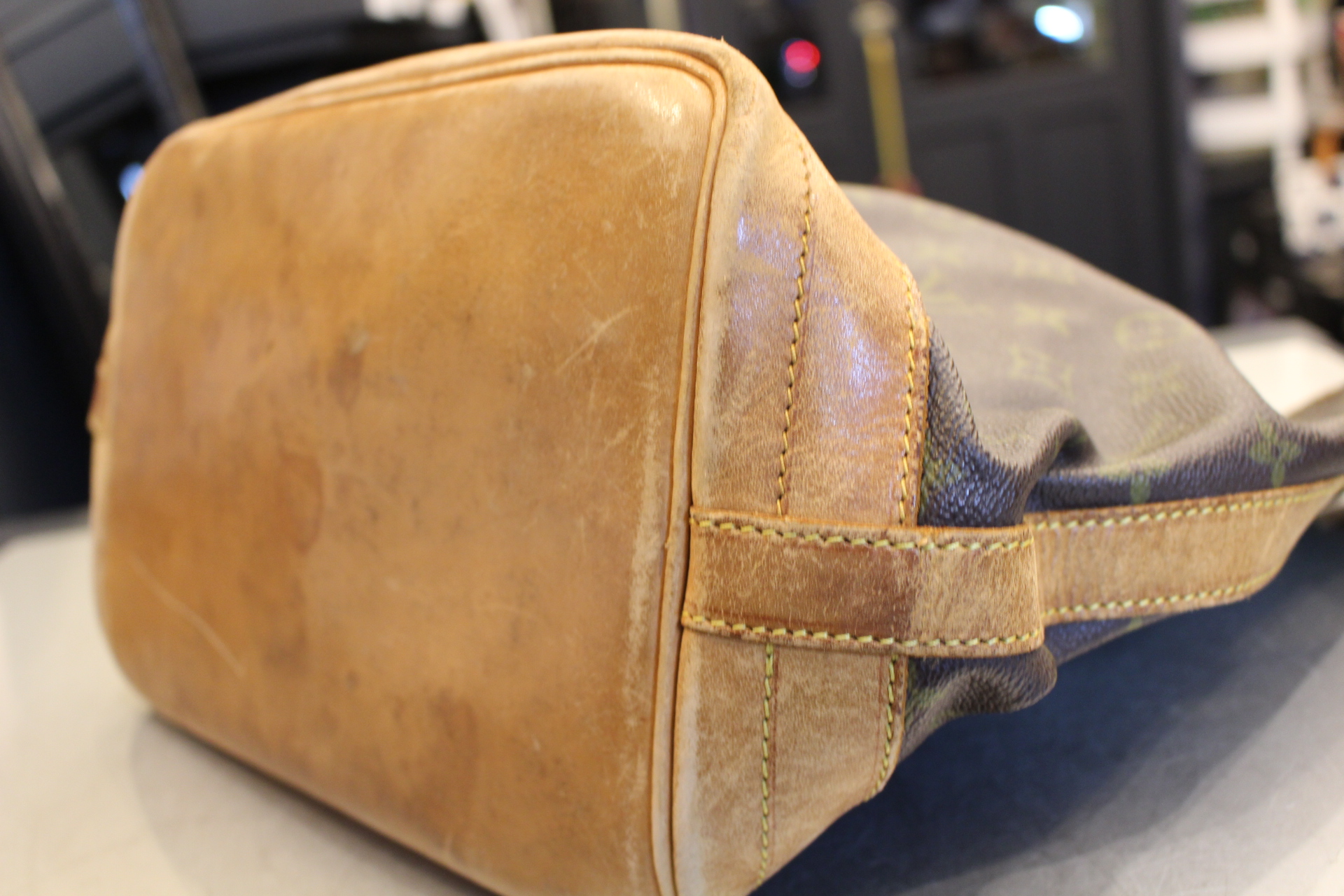 ヴィトンの巾着型バッグの”ノエ”ですが、底のヌメ革の劣化が気になりご来店。