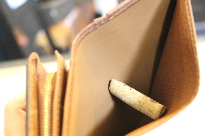 ヴィトンのダミエのお財布ですが、月日と共に内張りの劣化が目立ってきました。