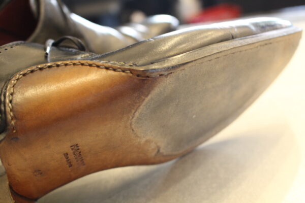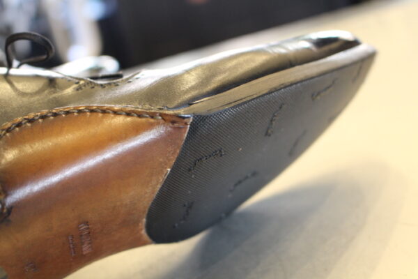 土踏まずの部分からアッパーにソールを縫い付けている為、ハーフラバーソールの取付位置が重要です。