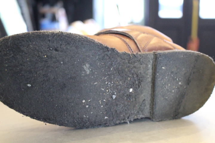 初めは磨きでの御来店でしたが、お話ししていく中でソールのベタつきが気になるそうです。